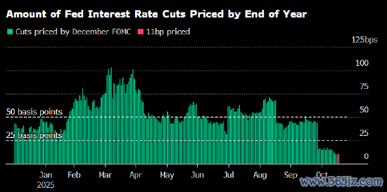 这波押注与利率互换市场目前的定价形成鲜明对比,互换市场显示,美联储下次会议降息的可能性约50%。而就在两周前,市场定价显示,预计降息25个基点的可能性约70%。这种定价上的转变还延伸到明年,目前对1月28日政策会议的降息预期不足25个基点。