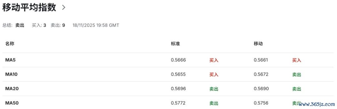 技术指标显示,日图级别上,纽币自布林带下轨所指向的0.5605附近区域获得一线支撑后已连续第6个交易日维持反弹格局,伴随14日相对强弱指标RSI自30以下深度超卖区间回升至40附近区域,反映市场集中性抛售边际效应正在减弱,尽管空头动能当前仍然占据完全主导优势局面,但也提示短线“超涨—均值回归”风险在累积,需防范空头动能“加速-衰竭-回撤”的节奏切换。然而,在纽币短期未能回收至布林带中轨上方,以及RSI指数未能成功进入55-45强弱平衡区之前,当前任何上行仅视为技术性反弹以及汇价调整阶段,而非真实技术性或趋势性级别扭转。布林带中轨当前位于0.5695附近区域,为纽币短期价格走势结构提供多空力量以及强弱格局核心分化枢纽,若汇价可成功回收至该区域上方,则才将有望触发真实性技术反弹并推动汇价进一步走高测试布林带上轨所指向的0.5790动态区域阻力提供积极信号。布林带向下开口,暗示短期汇价下行动能仍然充沛,提示汇价短期“回撤-下行延续”风险仍然维系较高水平。与此同时,布林带下倾形态限制纽币反弹斜率,MACD显示DIFF-0.0033、DEA -0.0038、DIFF值高于DEA,确认纽币短期空头趋势。叠加MACD柱状图维持负值区间与双线位于零轴下方维持放大,显示空头动能维持放量阶段,提示空头动能偏强持续性仍在上升。如若后续柱状图呈现负值缩窄并出现零轴上方的回测,则才将有望触发真实技术性以及趋势性反弹的概率。